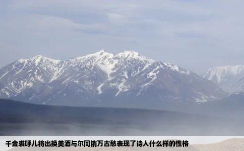 千金裘,呼儿将出换美酒,与尔同销万古愁。将进酒,是唐代以前乐府歌曲的一个题目,内容大多咏唱饮酒放歌之事。在这首里李白“借题发挥”借酒浇愁,抒发自己的愤激情绪。这首诗非常形象的表现了李白桀骜不驯的性格:一方面对自己充满自信,孤高自傲;一方面在政治前途出现波折后,又。